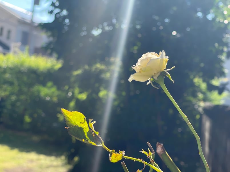 2か月も遅れて、一輪の薔薇が咲いているので驚きました。